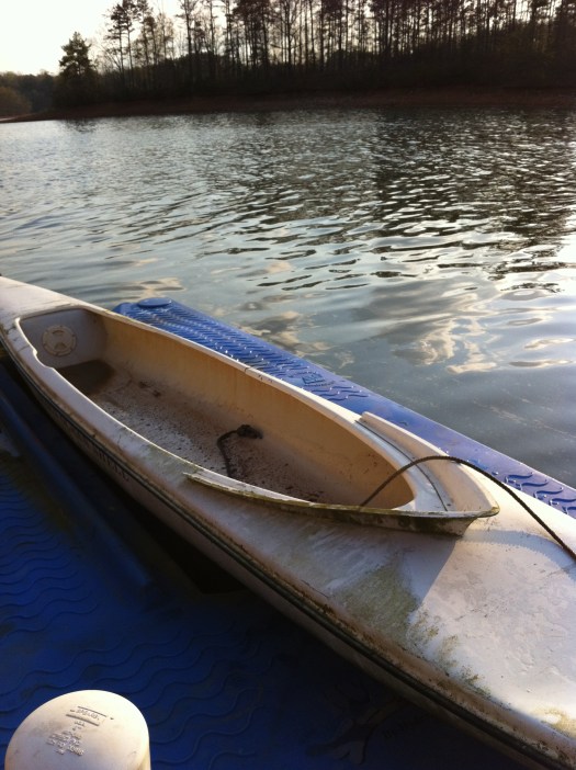 Well it’sĀ spring here in Northeast Georgia and I finished relatively early this past Tuesday and decided to crack out the ole skull and test my skills. The cover for it had been blown away years ago and now mildew covered the entire bottom. I have two non functional jet skis that I am having trouble having someone to take away and they had to be moved at great pain to allow for the skull to get to the platform and then to the water. After about 40 minutes of kicking the jet ski to be sure no snakes (they like to stay under the jet ski and the platform) tying ropes and untying ropes and moving the jet skis I finally get to the skull to move it to the platform (pictured in blue in the picture above.) When I begin to move the skull about 5 bird eggs fall out with two bird nest. The best I could tell is that these were old nests evidenced by some of the eggs already had cracks and such and did not appear to be active or viable. As I am moving the skullĀ the nests begin to float away from the dock in an odd fashion that was almost mesermizing…little spinning spaceships on the water floating on the water as if they had been made for that exact purpose.