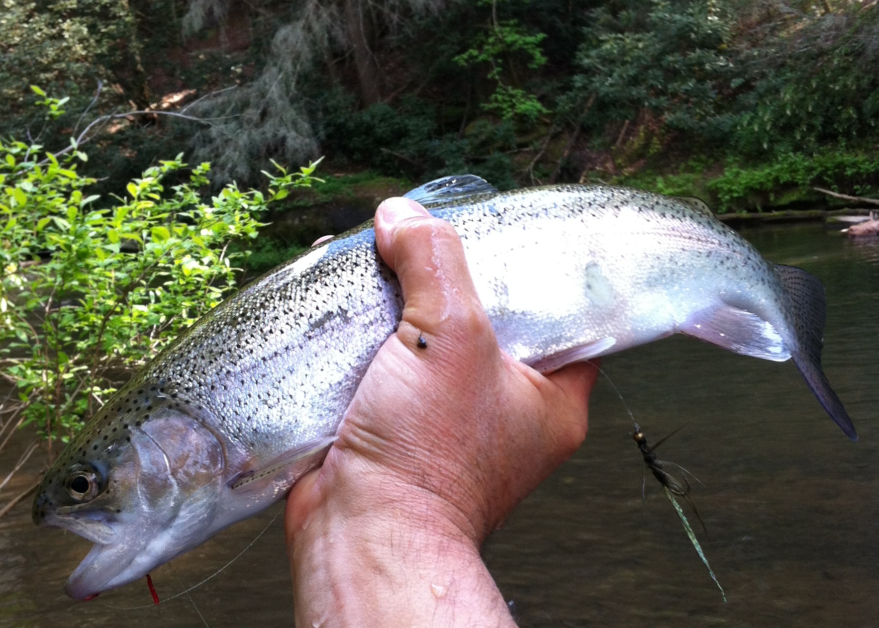 That’s a San Juan Worm and a Wooly Bugger dropper and a Soque River Rainbow….just flows off the tip of the tongue when you say it don’t it?