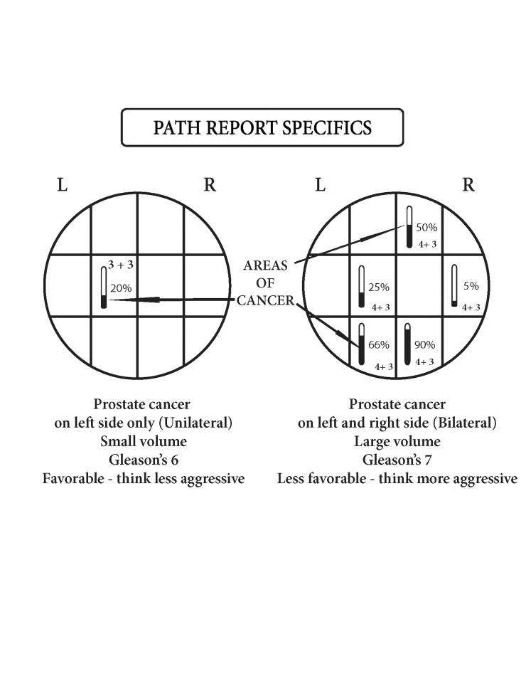 In addition to the biopsy specifics, the most important of which is the Gleason’s score and the number of cores positive, you need to be aware of your PSA and the findings of your rectal exam. (A palpable nodule implies capsular extension and this may impact your decision making process.)